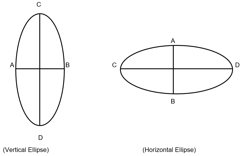 In both the ellipses shown above AB is minor axis and CD is the major axis.